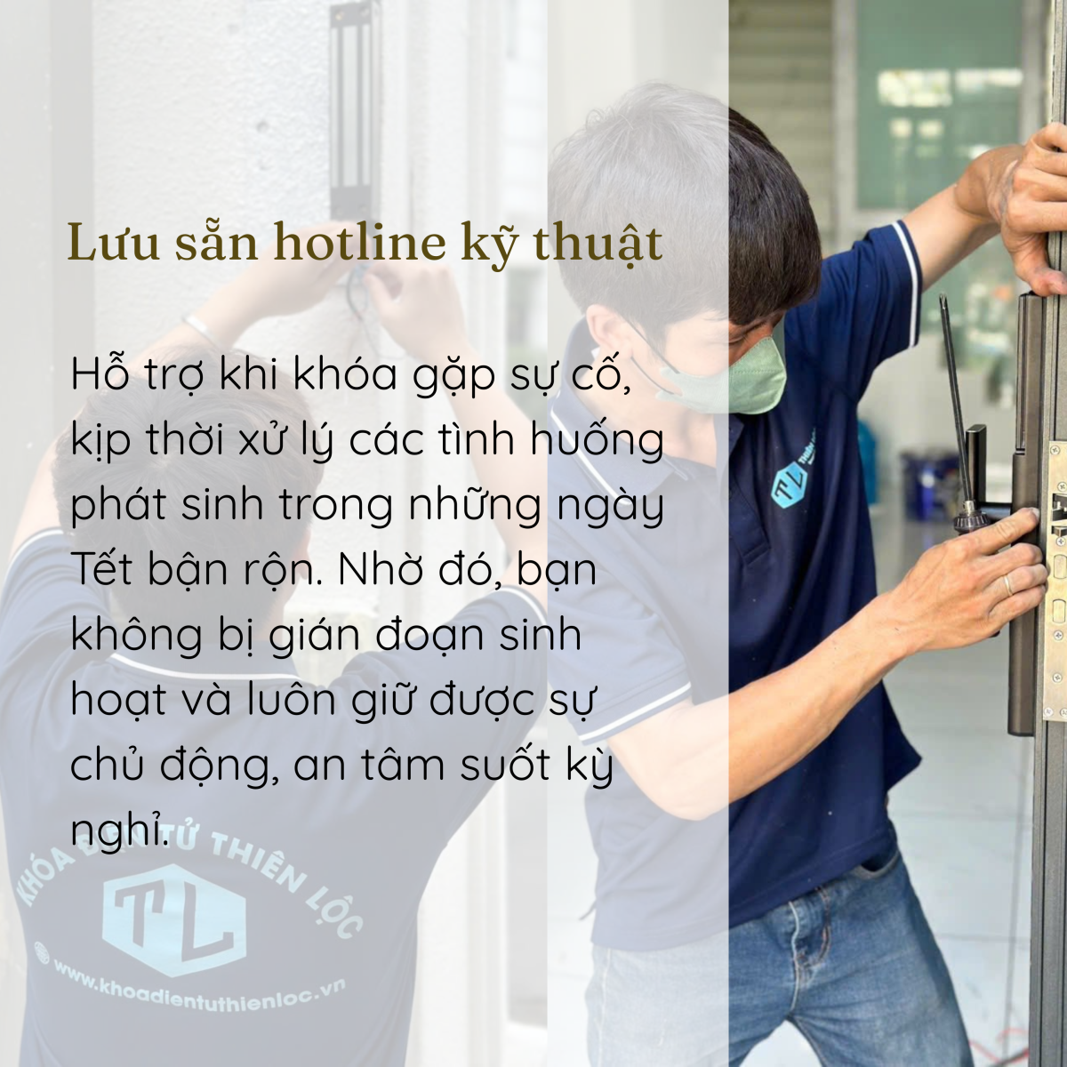 Trong những ngày Tết, việc liên hệ sửa chữa có thể mất nhiều thời gian nếu không chuẩn bị trước. Vì vậy, người dùng nên lưu sẵn hotline kỹ thuật Thiên Lộc để được hỗ trợ kịp thời khi khóa gặp sự cố. Đội ngũ kỹ thuật luôn sẵn sàng tư vấn từ xa và hướng dẫn xử lý nhanh, giúp sinh hoạt gia đình không bị gián đoạn.